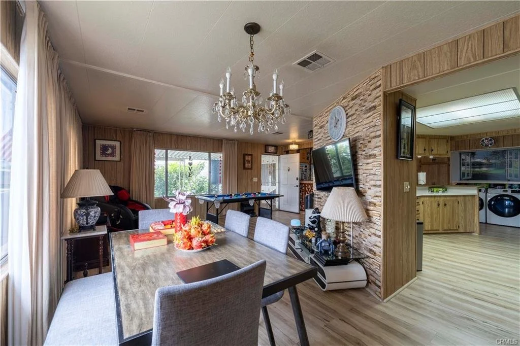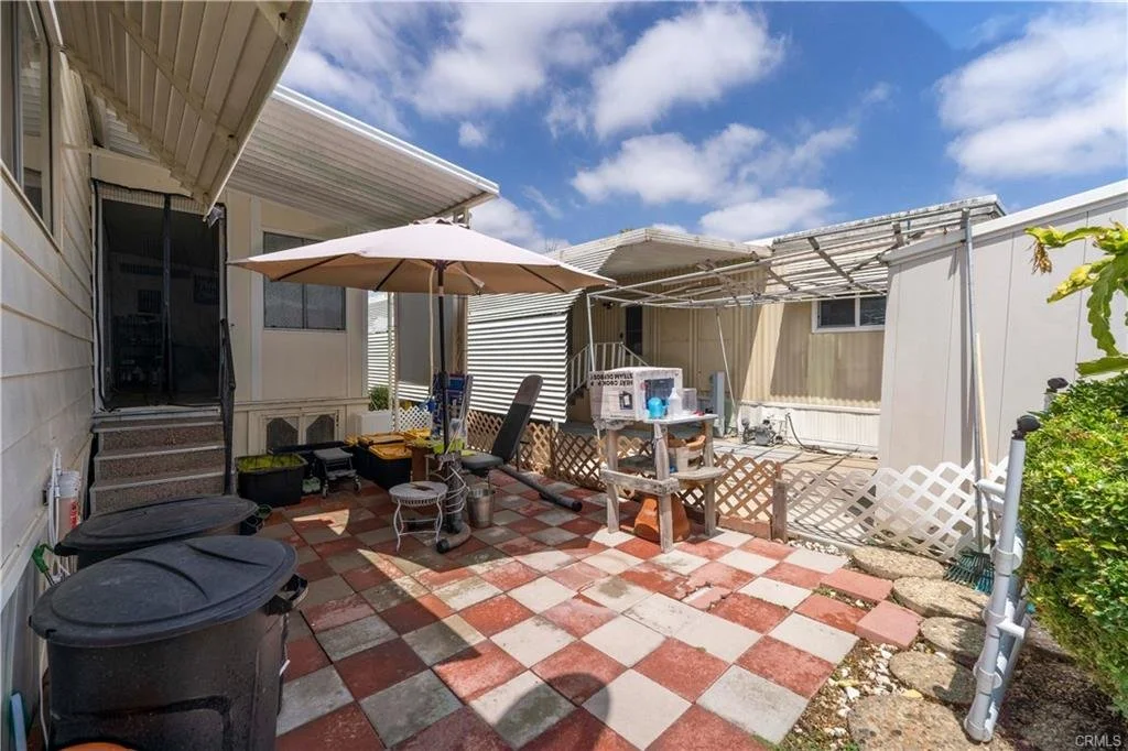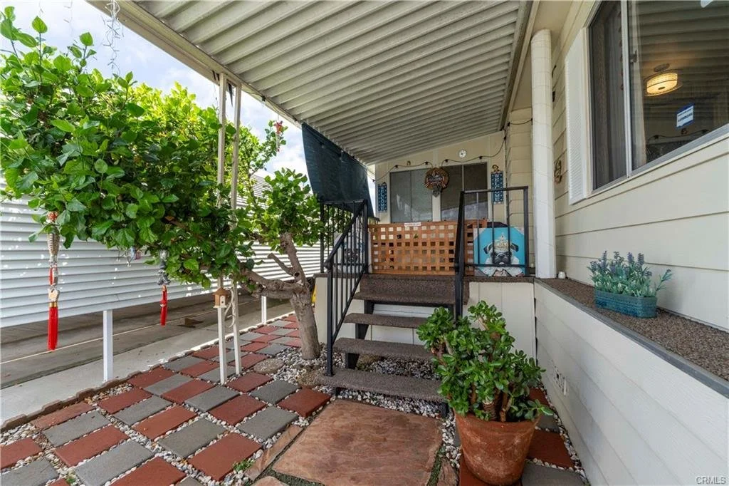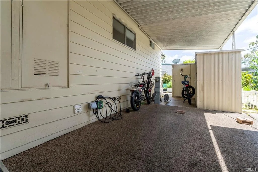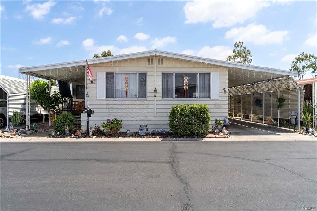 Welcome to this charming one-story manufactured home in a 55+ Community The Royal Gardens Estates, conveniently located just minutes from shopping centers. This well-maintained home features an open floor plan filled with natural light and a remodeled kitchen (2021) with sleek finishes and an induction stove. Enjoy the convenience of an indoor laundry unit, central air conditioning and heating, and a covered front porch perfect for relaxing. The expansive backyard offers ample space for gardening or working out, while a bonus storage shed provides additional storage options. Additional features include 3-car tandem covered parking just steps from the front door, ensuring easy access, and a dedicated EV charger installed in 2021. Enjoy relaxed living in our pet-friendly mobile home community, featuring top-notch amenities like a pool and spa, clubhouse, event space, fitness center, and library. Stay active with shuffleboard, horseshoes, and greenbelt areas, or take advantage of our convenient car wash station. A perfect blend of comfort, convenience, and location—this home has it all!