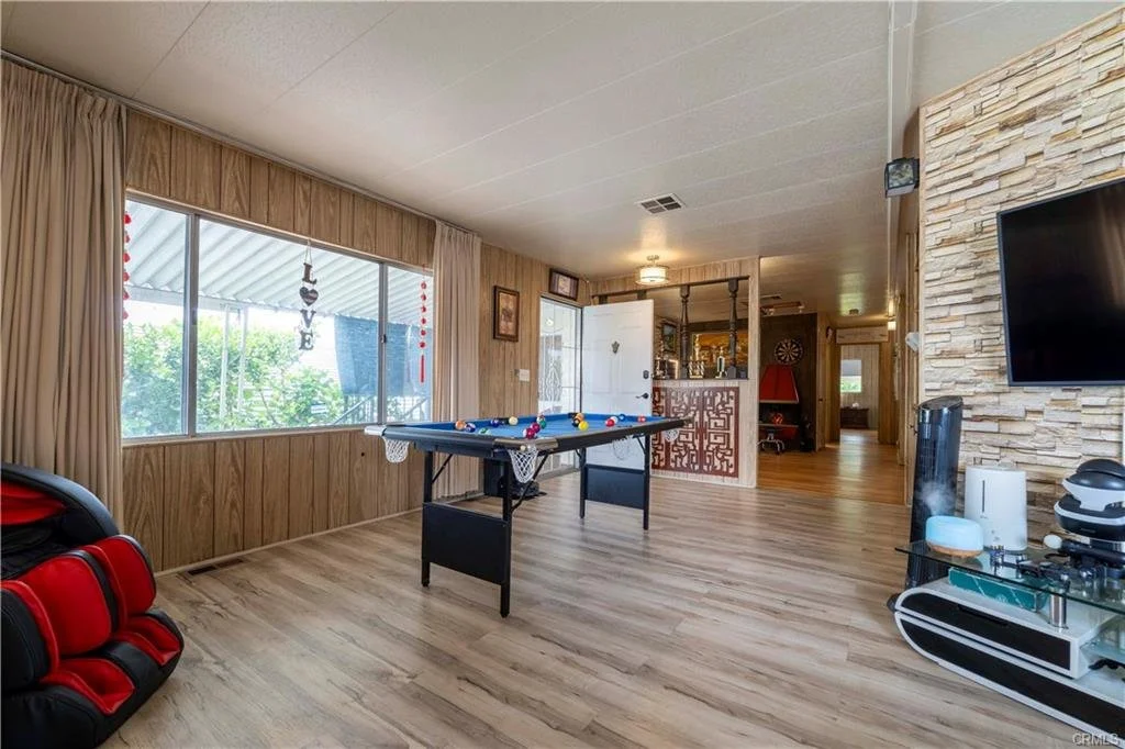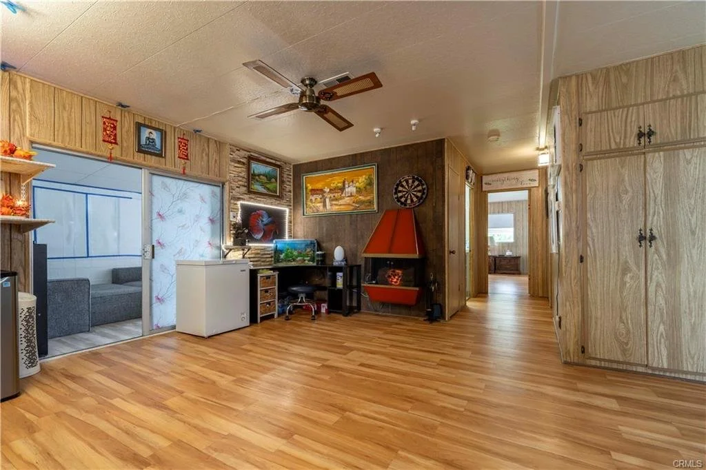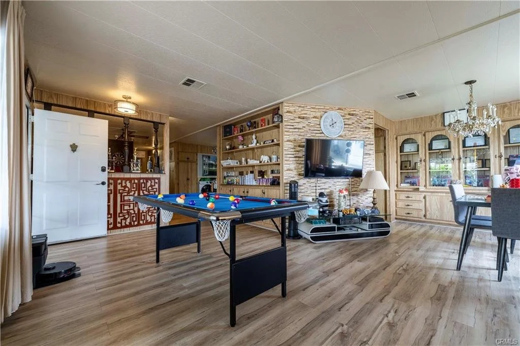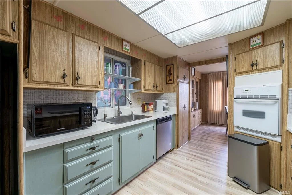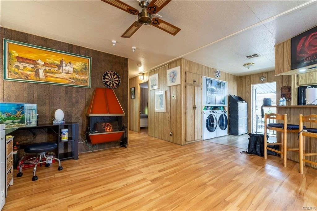 Welcome to this charming one-story manufactured home in a 55+ Community The Royal Gardens Estates, conveniently located just minutes from shopping centers. This well-maintained home features an open floor plan filled with natural light and a remodeled kitchen (2021) with sleek finishes and an induction stove. Enjoy the convenience of an indoor laundry unit, central air conditioning and heating, and a covered front porch perfect for relaxing. The expansive backyard offers ample space for gardening or working out, while a bonus storage shed provides additional storage options. Additional features include 3-car tandem covered parking just steps from the front door, ensuring easy access, and a dedicated EV charger installed in 2021. Enjoy relaxed living in our pet-friendly mobile home community, featuring top-notch amenities like a pool and spa, clubhouse, event space, fitness center, and library. Stay active with shuffleboard, horseshoes, and greenbelt areas, or take advantage of our convenient car wash station. A perfect blend of comfort, convenience, and location—this home has it all!