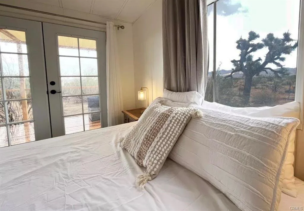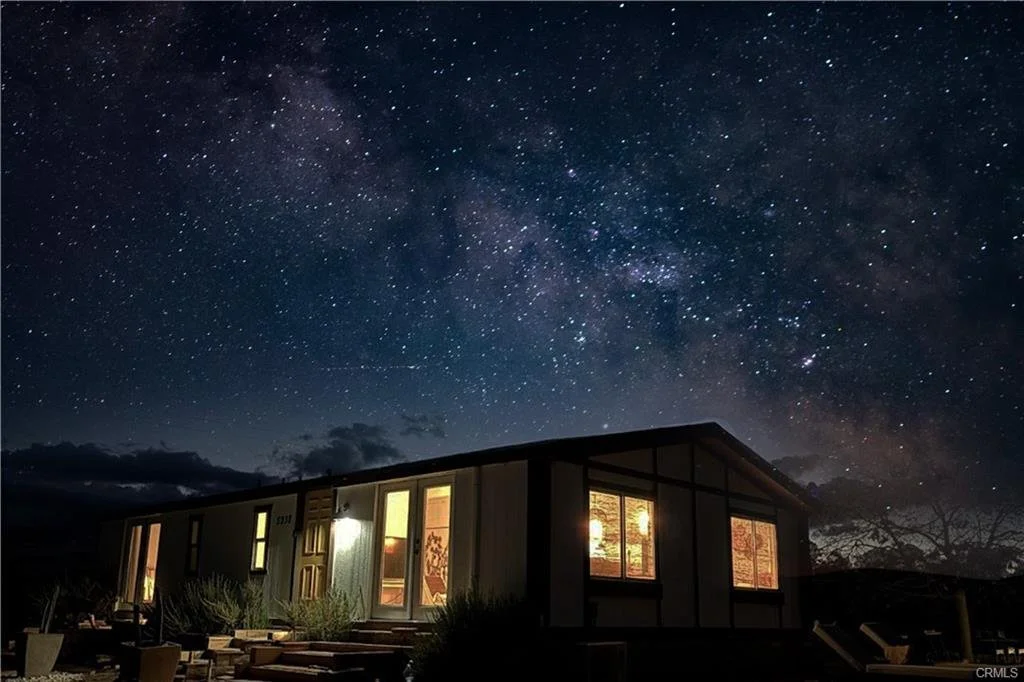 Exceptional investment opportunity in Joshua Tree! This property features two manufactured homes situated on over 10 acres of land, adorned with pistachio trees across three combined parcels. The first home is approximately 1,056 square feet, offering 2 bedrooms and 2 bathrooms, currently operating as a short-term rental. The second home spans about 900 square feet with 2 bedrooms and 1 bathroom, occupied by a long-term tenant. Both homes have undergone extensive renovations and are fully connected to utilities, including power, gas, water, and sewer. They are equipped with modern stainless steel appliances. Located near Joshua Tree National Park, the property boasts breathtaking 360-degree views and holds significant potential for generating additional income streams.